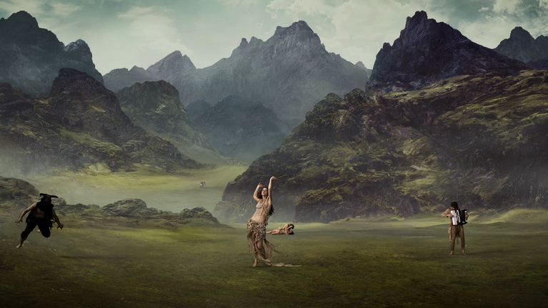 Replete with burning towers, alien spacecraft and animistic dance rituals, Yugen embodies a gestalt of a nexus of influences; from gaming aesthetics, digital magical realism, mystic cosmologies and the psychedelic, entheogenic experience. It is resonant of a language of dreaming, hallucinations or out of body experiences.